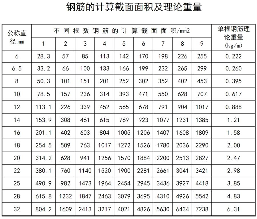 鋼筋的常用數(shù)據(jù)(GJ)